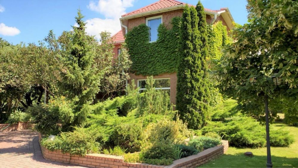 У будинку: меблі, сауна, камін, тераси, склопакети, телефон, інтернет, кондиціонери, підвал, підігрів підлоги, супутникове ТБ, холодильник, посудомийна та пральна машини тощо. Своя свердловина, опалення – газовий котел. Стіни будинку – пінобетон, облицювальна червона цегла. Дах – металочерепиця.