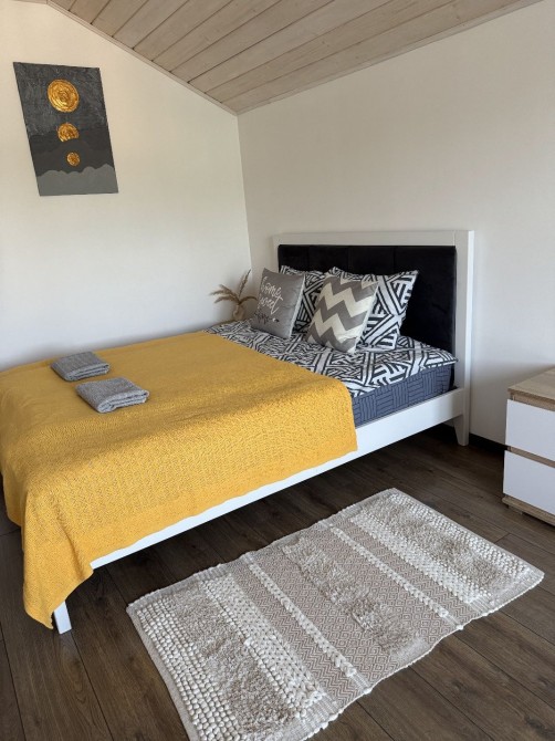 Код объекта 215 Сдается в посуточную аренду уютный современный дом с красивым зеленым участком. Тихий двор с прекрасным садом, просторная летняя терраса и мангальная зона для отличного времяпровождения с семьей и друзьями. Рядом с домом пляж, река Десна, лес. Самое удачное место для отдыха на природе. Дом с отличным современным ремонтом, пять раздельных спален, большой зал с камином, два санузла, 14 спальных мест. Есть все необходимое для комфортного проживания. дом может разместить максимально до 20 человек днем и до 14 на ночевку Заезд 14:00 выезд 12:00 цены зависят от количества людей: с пн по чт от 10000 грн в выходные от 13000 грн