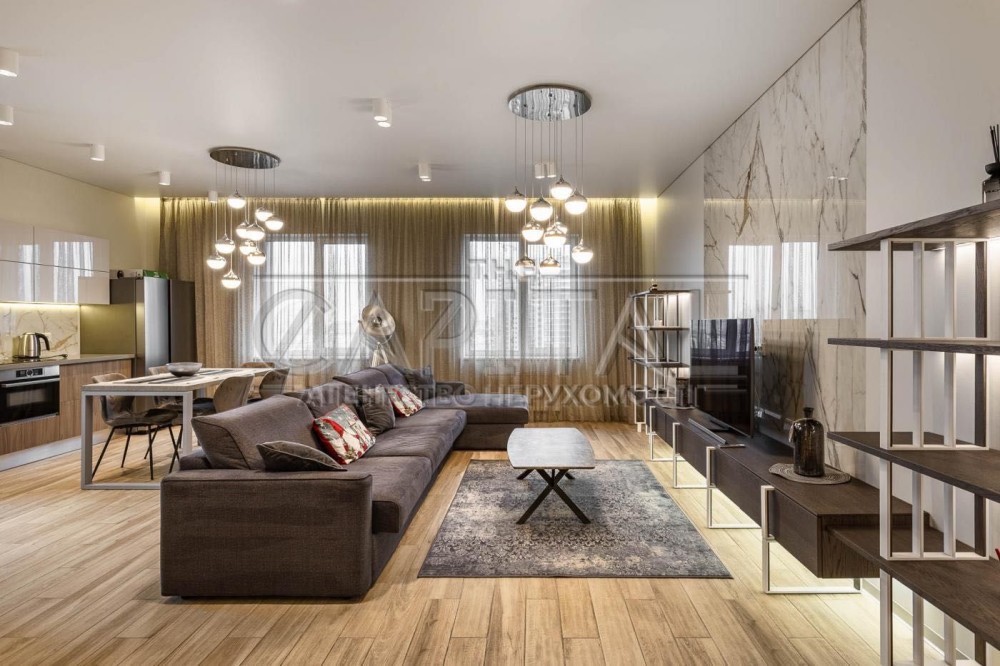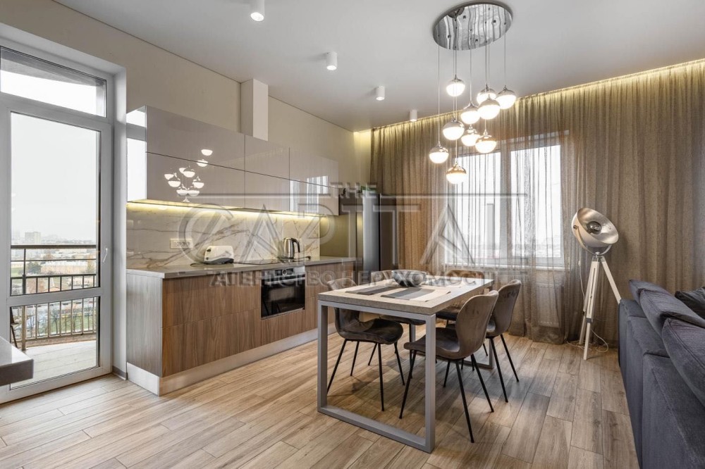 З кухні-вітальні та тераси відкривається панорамний краєвид на місто та стадіон Олімпійський.