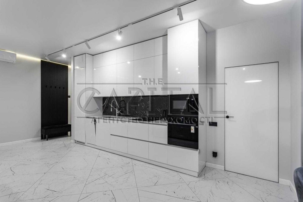 У вітальні замість телевізора встановлено проектор для домашнього кінотеатру, що створює справжню атмосферу затишного перегляду. Серед переваг — тепла підлога, система вентиляції, біокамін, сигналізація та відеоспостереження. Для поціновувачів — програвач для вінілів. Панорамні вікна відкривають краєвид на центр столиці та НСК «Олімпійський».