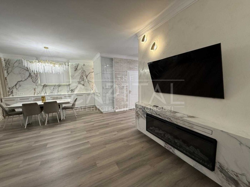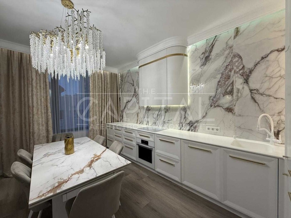 Інтер’єр: виконаний у сучасному стилі з використанням дорогих матеріалів у світлих тонах, що створює атмосферу простору та затишку