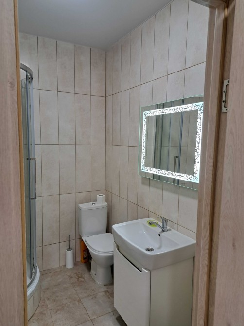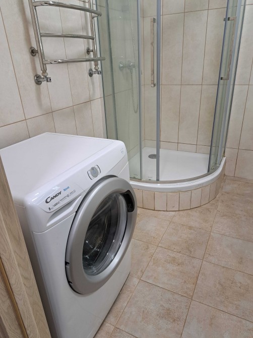 Техніка: холодильник, пральна машина, газова плита і духова шафа, двоконтурний газовий котел з блоком безперебійного живлення на випадок виключення електроенергії. Окремий санвузол: душова кабіна, пральна машина, раковина, тумба тощо.