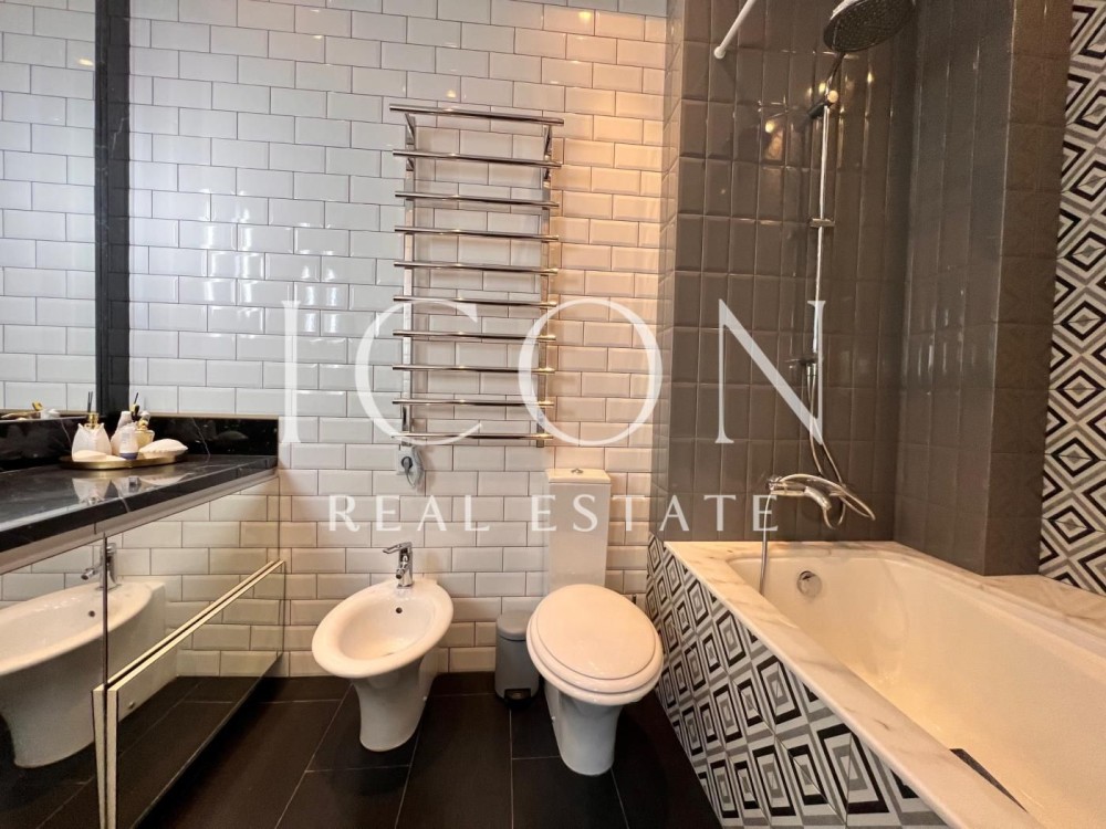 У квартирі простора вітальня з зоною під невеликий кабінет або вбиральню, спальня з вбудованою вбиральню. Балкон.