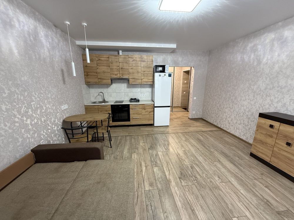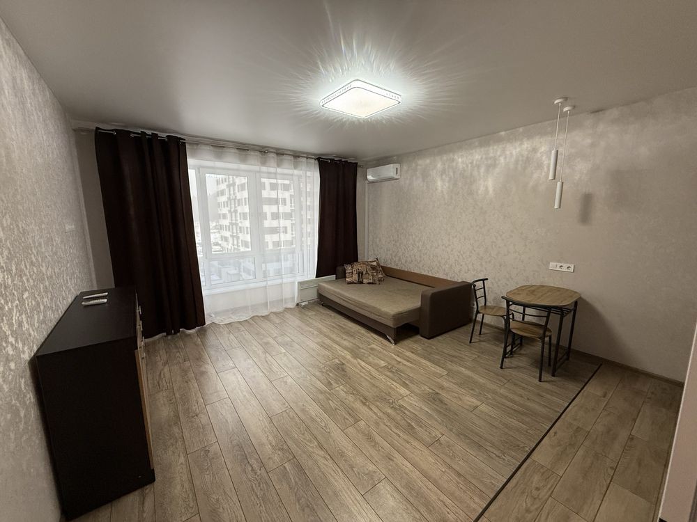 Пропонується в оренду світла квартира-студія площею 32 м², розташована на 6 поверсі сучасного житлового комплексу «Чехов Парк» поруч із Центральним парком.