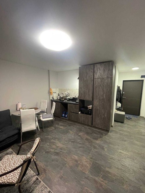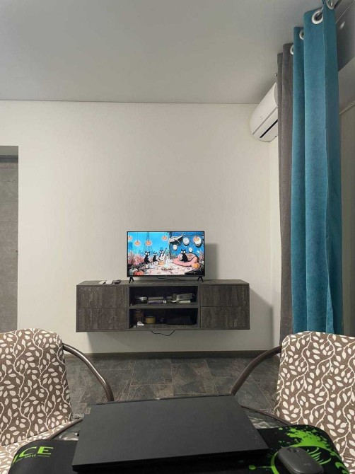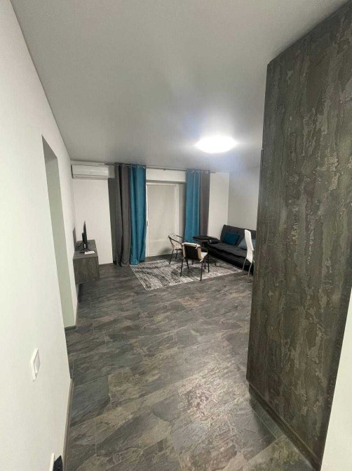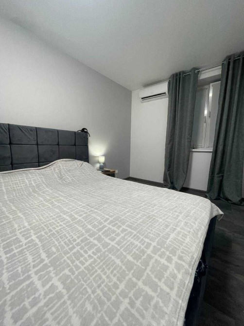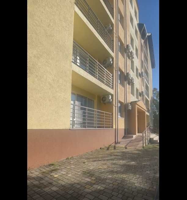 Квартира 45 кв м. з балконом в новому будинку на першому поверсі 6-ти етажного дому. Закрита територія з паркомісцем. Спальня 15 кв.м. і кухня-студія. Нові меблі. Двоспальне ліжко із ортопедичним матрасом, вбудована шафа. В кухні-студії сучасний диван із зручним спальним місцем. Два крісла і стіл для балкону в теплий час року. Сумісний санвузол і ванна. Квартира обладнана всією необхідною техніковю : вбудований холодильник, кавоварка, електрична поверхня, мікроволновка, посуд, пральна машина, телевізор, бойлер, два кондиціонера.