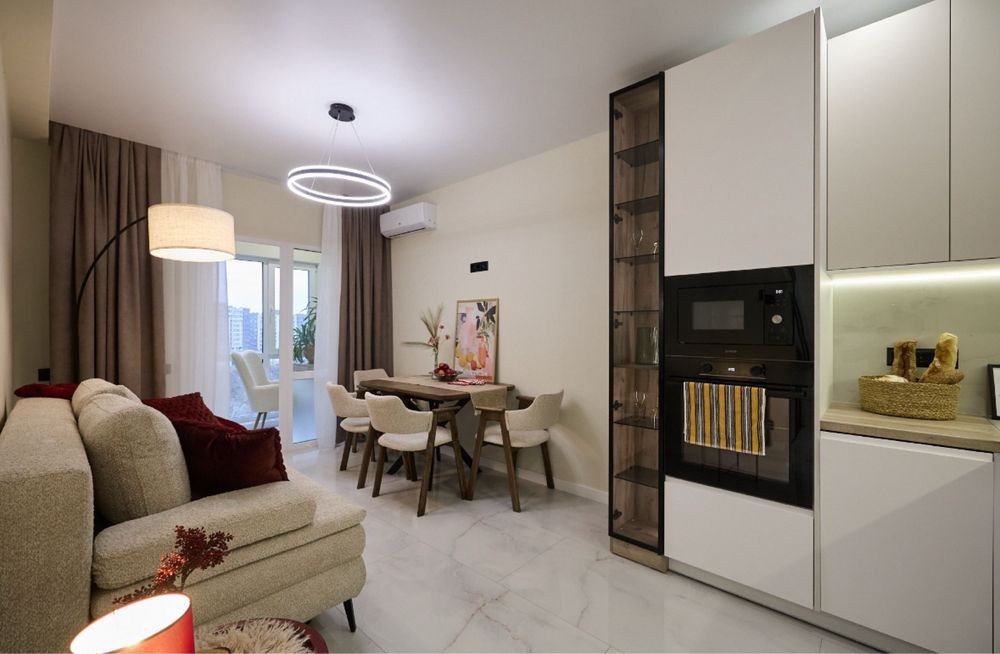 -Квартира готова, щоб завтра вже заїхати та жити, лише речі розкласти по полицям. Лаконічний, продуманий ремонт по дизайн проекту. Вбудована техніка, якісні меблі, ідеальне світло. У квартирі зроблена тепла підлога по всій квартирі, велика кількість розеток, максимально ефективно і функціонально задіяний кожен метр квадратний.