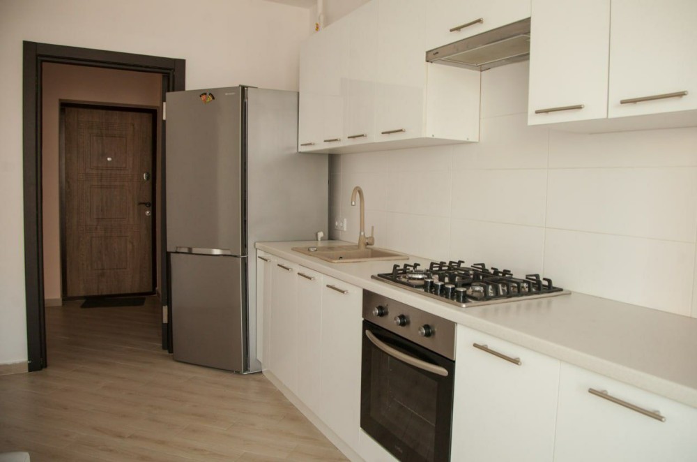 Ізольована кімната та кухня облаштована кухонними меблями зі всією необхідною побутовою технікою, просторий балкон.