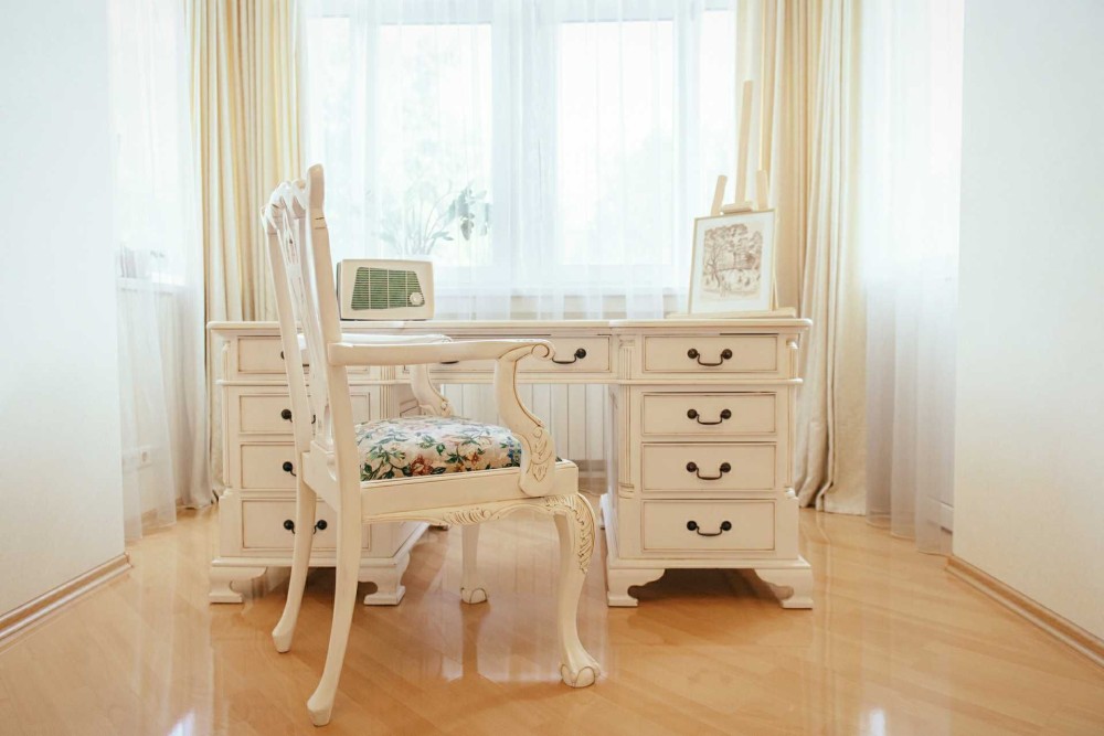 Кабінет: письмовий стіл, стійка для малювання картин, банкетка.