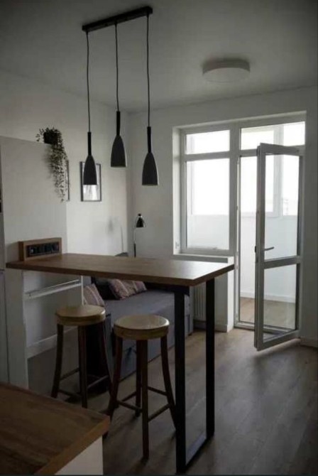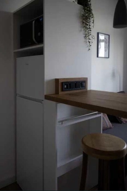 Велика барна стійка, холодильник, електро-чайник, мікрохвильова піч з функцією гриль, індукційна варильна