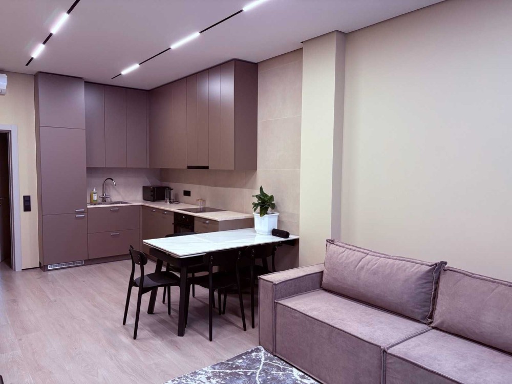 В квартирі віиконано якісний ремонт .В квартирі встановлено 2 кондиціонера з функцією обігріву, тепла підлога, пральна машина з сушкою, посудомийна машина, телевізор , мікрохвильова, бойлер, духова шафа, варильна поверхня.