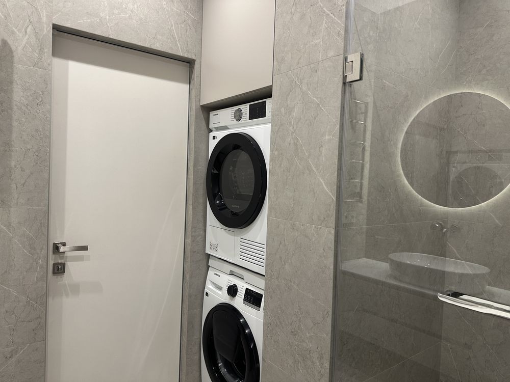 Квартира обладнана якісною необхідною технікою фірми Samsung (пральна та сушильна машини, посудомийка, холодильник, кондиціонер, пилосос).
