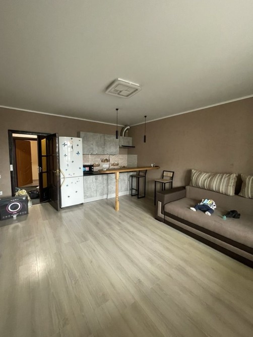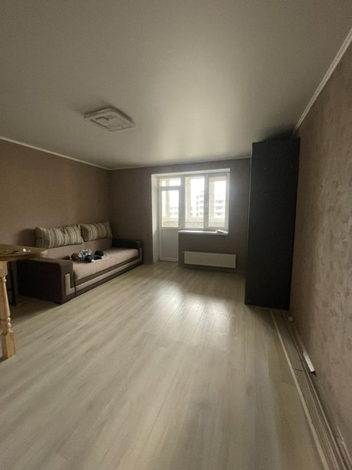 Площа — 33 м², 7 поверх. Кімната об’єднана з кухнею, балкон утеплений.