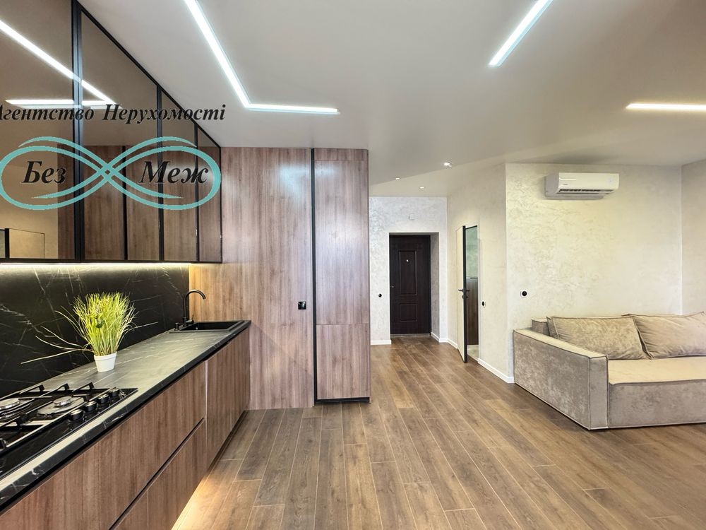 В квартирі є все необхідне для комфортного проживання а саме: вбудована кухня з витяжкою , холодильник, мікрохвильова піч, духовка, посудомийна машина, робоча зона, диван розкладний, кондиціонер, пральна машина, шафа в коридорі, двоспальне ліжко, шафа в кімнаті, стіл зі стільцями.