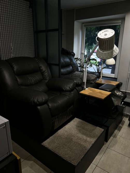 В наявності сухожар, вмонтована витяжка в робочий стіл, лампа,педикюрне крісло.
