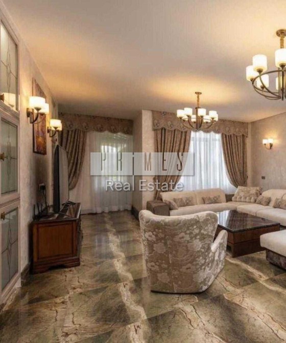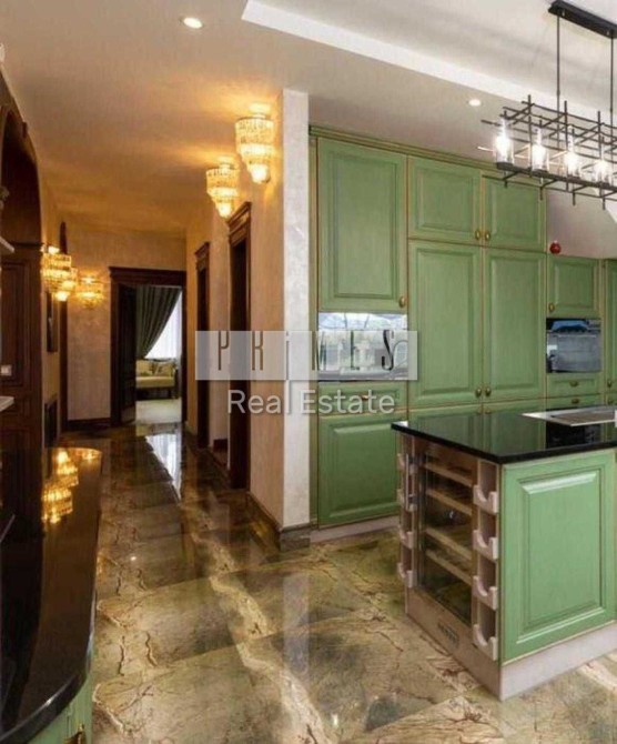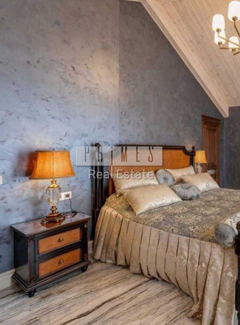 Будинок 370 м2, два поверхи. 1й поверх: вітальня, їдальня, кухня, кабінет, сауна, пральна, вбиральня. Гараж на 2 автомобілі, котельня. Кухня з виходом на терасу, 2 с/вузли. 2й поверх: хол з шикарним каміном (обшитий оніксом з підсвічуванням), 4 спальні, кожна зі своїм з/вузлом, гардеробом та балконом. Всі меблі та оздоблення в будинку тільки з натуральних матеріалів – натуральне дерево, мармур, шкіра. Велика тераса обладнана мангалом, миттям.