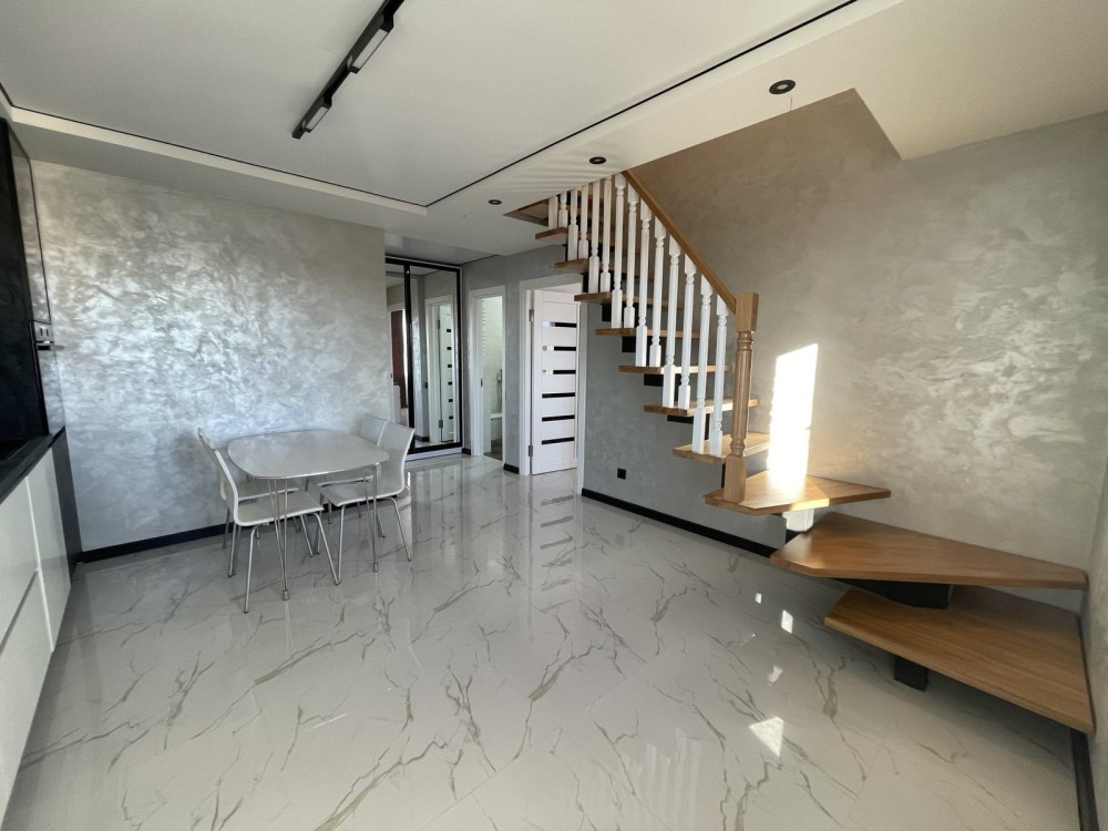 Здається в оренду дворівнева квартира у новому будинку, вул. Л.Гузара, індивідуальне опалення, євроремонт, можлива доукомплектації меблями, побутова техніка. Простора кухня-студія, два санвузли та три окремі кімнати.