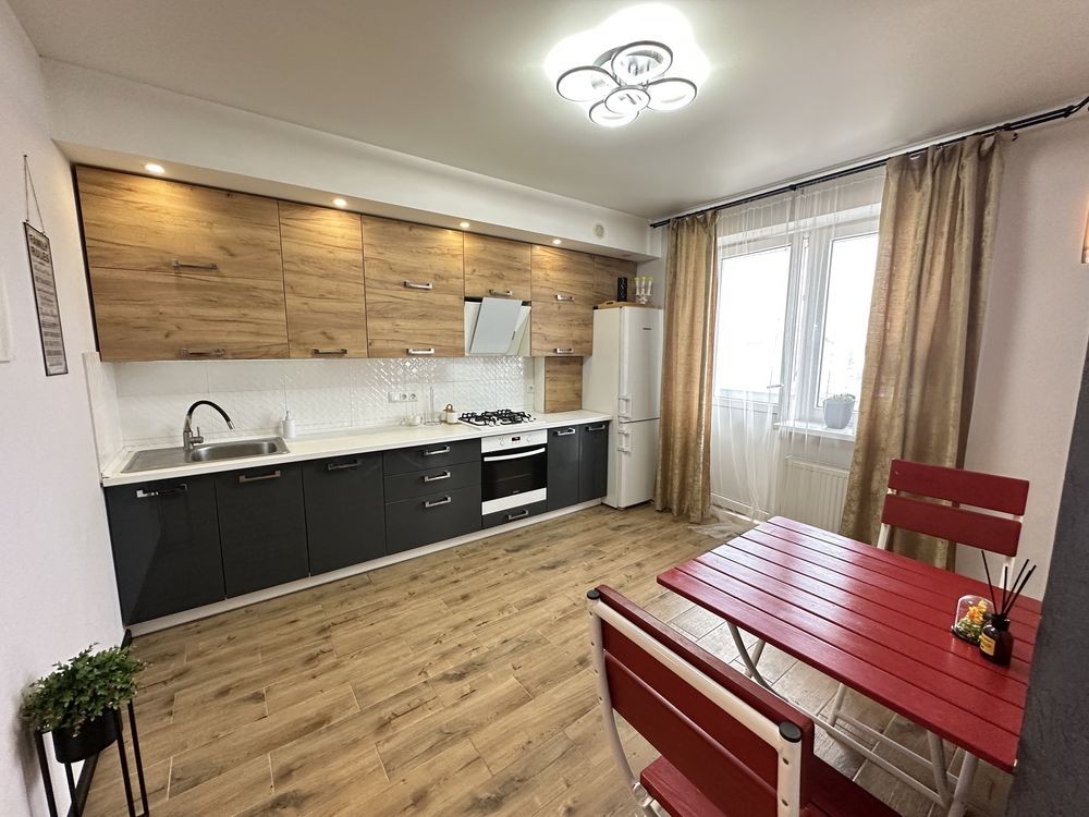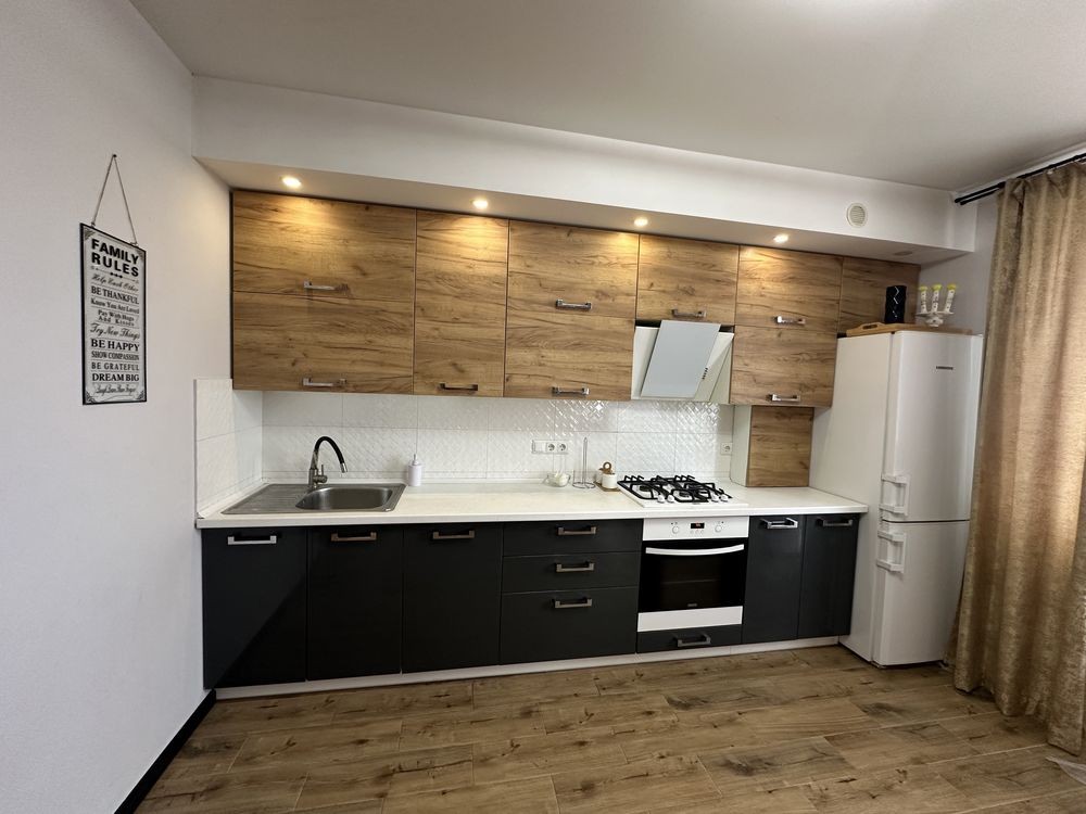 Оренда стильної 1 к кв з кухнею студією в новому будинку ЖК "Файна Таун" в Шевченківському районі, вул. Салютна, 2 Квартира 43 м2 , розташована на четвертому поверсі та складається з передпокою, спальні, великої кухні -студії та санвузла. Вікна квартири виходять в двір. Облаштована всіма необхідними меблями з екологічно чистої деревини та оснащена побутовою технікою: телевізор Samsung Smart 43, кондиціонери в кухні та кімнаті, плита індукційна, вбудований холодильник, духова шафа з функцією мікрохвильової печі, пральна машина з сушаркою. В кухні та ванній кімнаті тепла підлога, високошвидкісний інтернет. ЖК "Файна Таун" це: закрита територія з входом по картці, цілодобова охорона, відеоспостереження, паркінг, підземні контейнери для сміття, зарядні станції для електромобілів та лавки з інтегрованими батареями для підзарядки девайсів, розумне освітлення, яке підлаштовується під час доби та ще багато чого для того, щоб жити з комфортом й ні в чому себе не обмежувати) розповім при перегляді. Зручне транспортне сполучення та розвинута інфраструктура: магазини,спортивні та пішохідні зони ,зона барбекю, ресторани та кафе. Квартира, в якій поєднані комфорт та затишок, шукає своїх порядних орендарів молоду пару або одну людину без дітей та тварин. Перша оренда, квартира вільна.