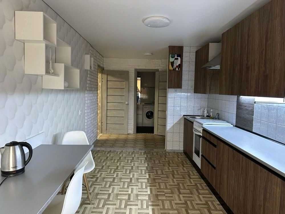 В квартире новый ремонт, есть вся необходимая мебель, кондиционер, телевизор, стиральная машина, холодильник, бойлер, двухспальная кровать и детская кровать, три спальных места, огромная лоджия и огромная просторная кухня .