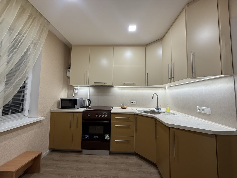 Пропонується в оренду затишна однокімнатна квартира на Юності, по вул. Курчатова. Зручний 2-й поверх 4-х поверхового будинку, є світлий засклений балкон. Житло укомплектоване меблями та технікою для комфортного проживання – диван(розкладається), шафи для зберігання речей, кухонні тумби, обідня зона. З техніки є телевізор, wi-fi, плита, духова шафа, холодильник, пральна машина. Приємним бонусом є газова колонка! Інфраструктура району добре розвинена – в пішій доступності магазини, супермаркети, аптеки, відділення пошти, школа, дитячий садочок, дитячий майданчик, також зупинка громадського транспорту в 5-ти хвилинах від будинку! Дзвоніть та домовимось на показ!