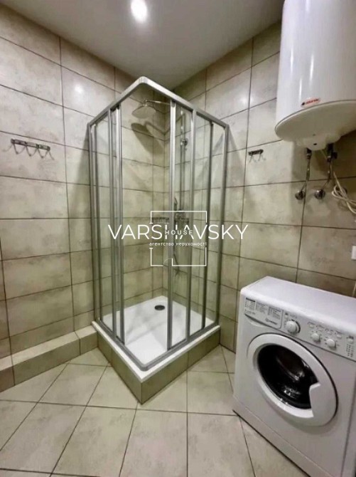 2) ванна кімната з душовою кабіною, пральною машиною та бойлером