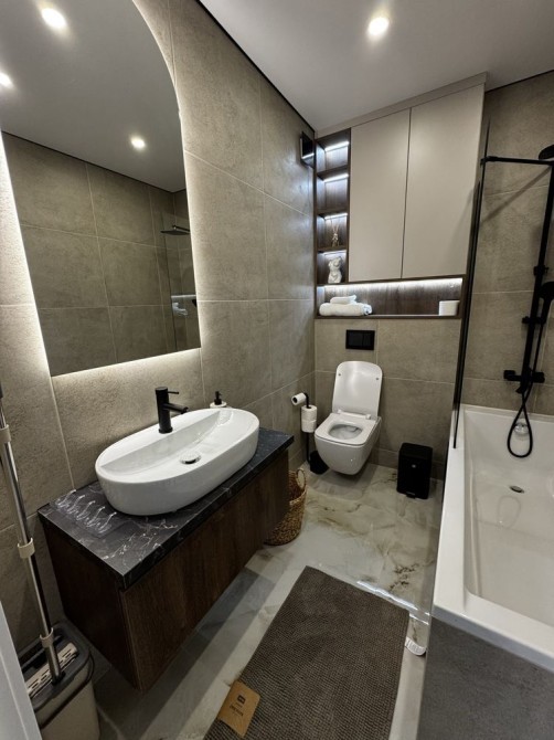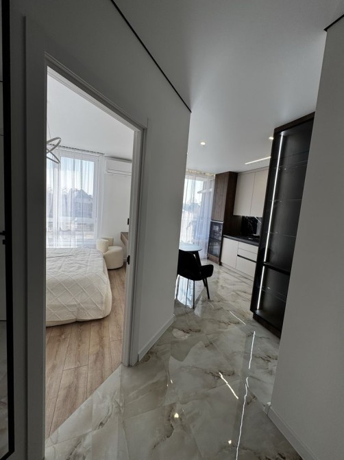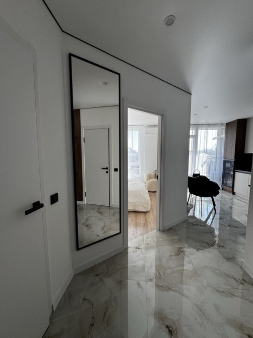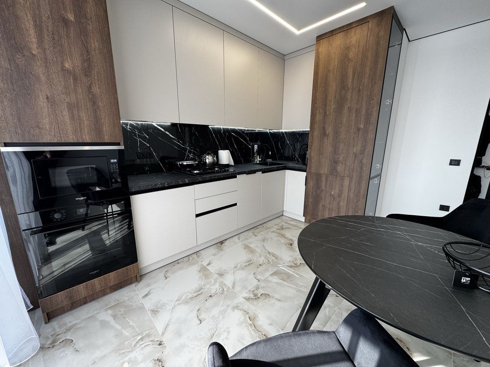 У квартирі є все необхідне: техніка, меблі, підігрів підлоги, кондиціонер, інтернет, гардеробна, відкритий балкон