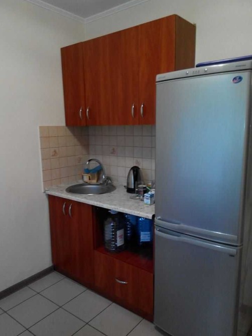 Кухня з холодильником, кавоваркою та мікрохвильовкою