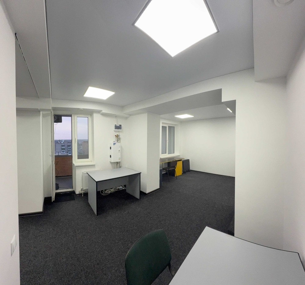 Офіс складається з двох приміщень опен спейс, переговорної кімнати, повністю мебльованої кухні, санвузла та великої лоджії. Загальна площа 103 м кв.