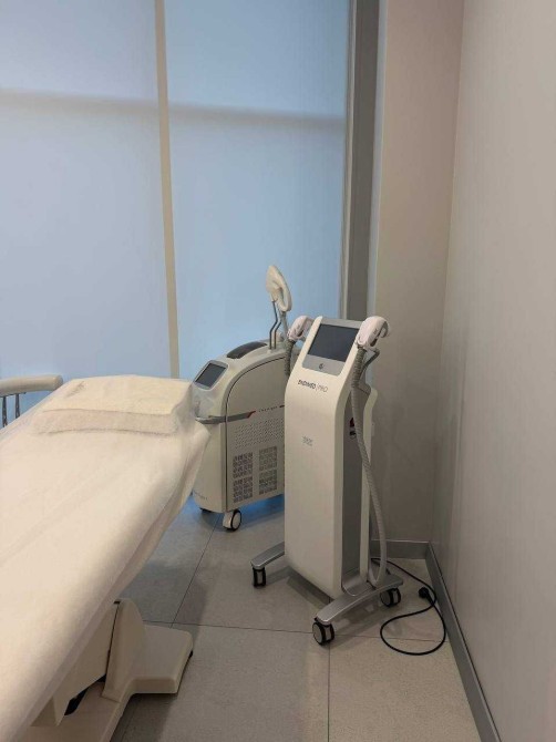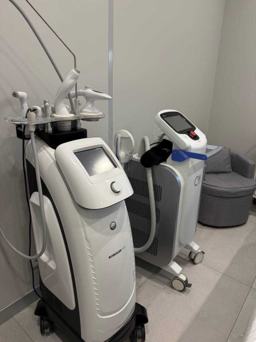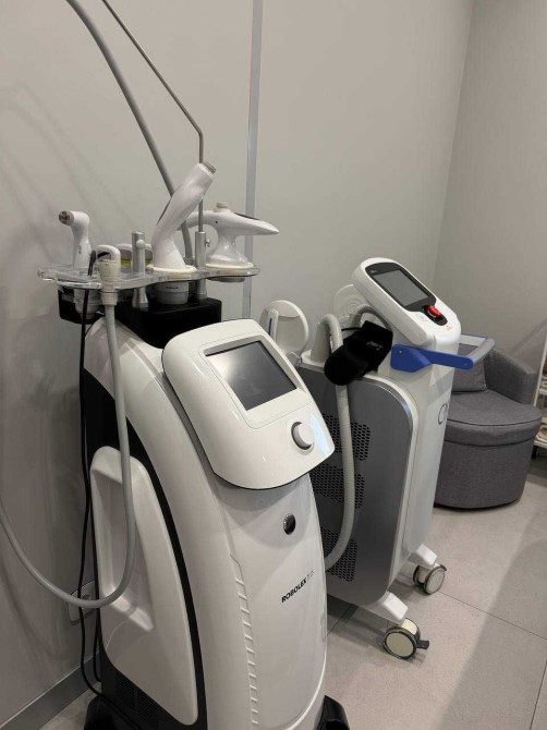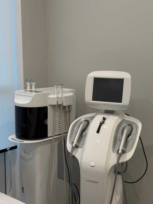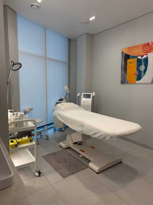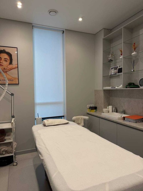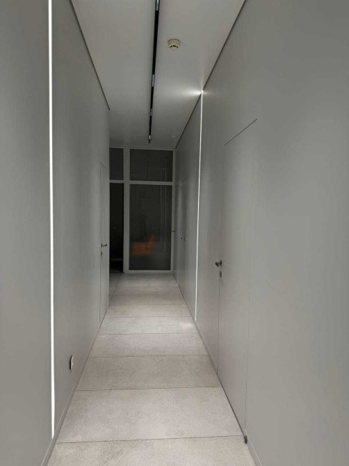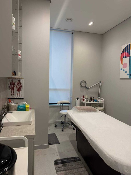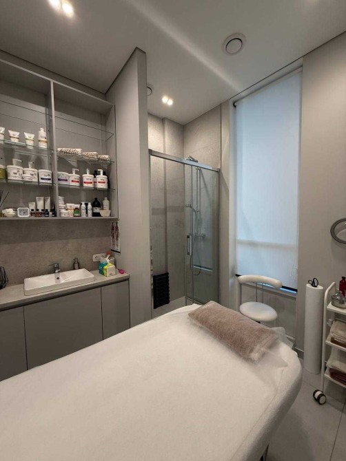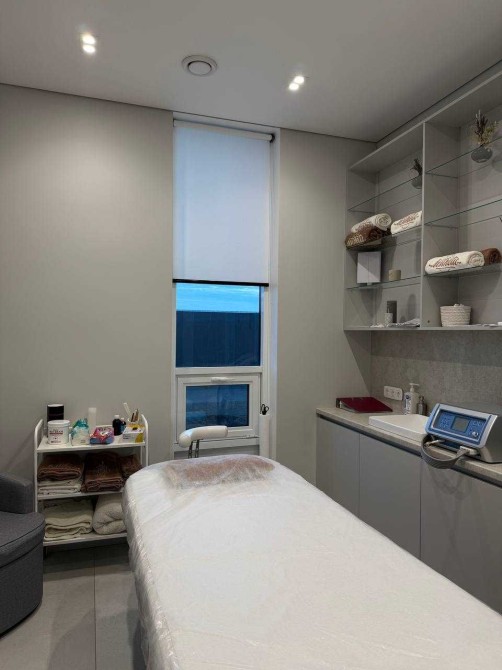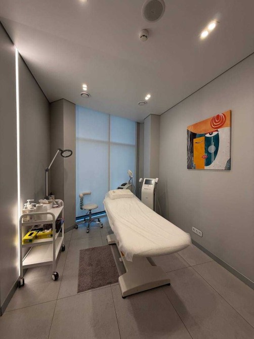 Усі інтер’єри розроблені згідно з дизайн – проєктом, з увагою до деталеи із використанням матеріалів, які створюють унікальнии та елегантнии простір для пацієнтів. У ньому панує легка, затишна атмосфера та ефективно використовується простір. В кожному з кабінетів є вбудовані меблі (шафи, столи, тумби для зберігання матеріалів для роботи), мийка з холодною/гарячою водою, жалюзі, кондиціонер, уф-лампа для озонування та примусова витяжка з підігрівом повітря, стіни з покращеною шумоізоляцією, в кожен кабінет заведені динаміки в стелі, підсвітки в стінах, встановлений осмос . Присутня міні-кухню, стіл, великий вбудований холодильник, мийку, мікрохвильовку, кавомашину та чайник для персоналу, має окремий санвузол для персоналу, бойлер, електричні рушникосушки.