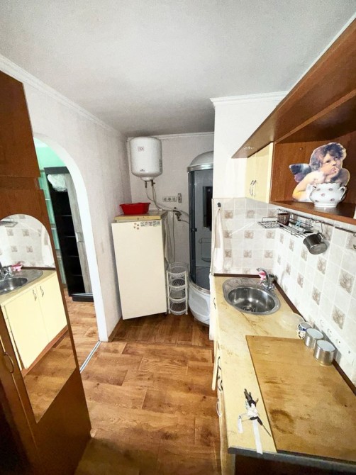 У кімнаті душ. Невелика кухня. Меблі. Ліжко. Додатково спільна кухня і туалет. У кімнаті є місце під пральну машину (у наявності її немає).