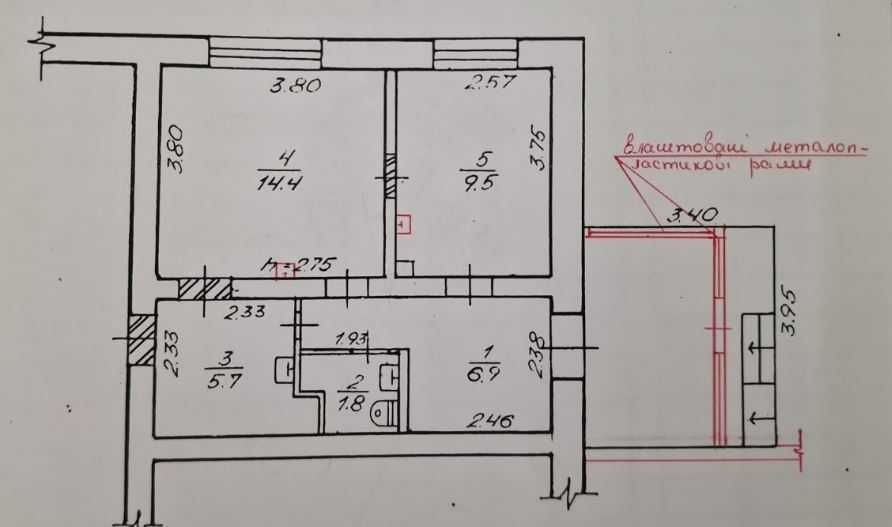 Площа приміщення 40 м2 + 9 м2 веранда