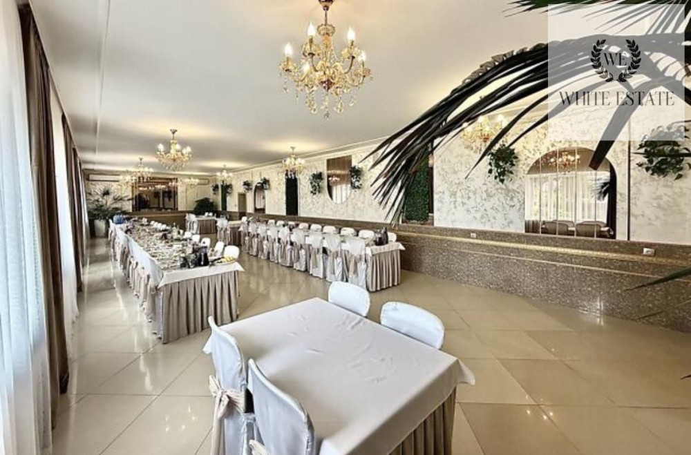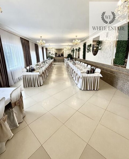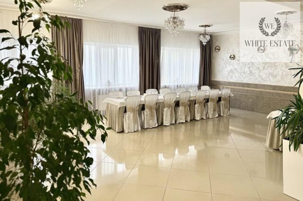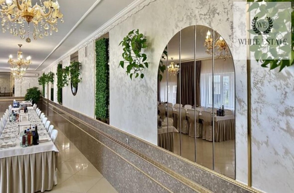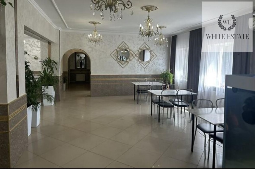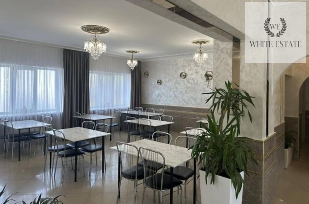 Внутрішній простір включає три просторі зали, кухонну зону, зону мийки посуду, два складські приміщення, окрему вбиральню, дві туалетні кімнати, вхідну групу та групу службового входу-виходу