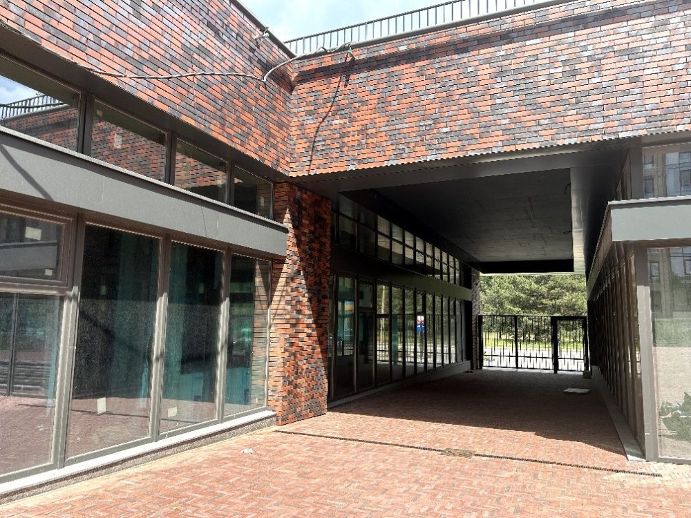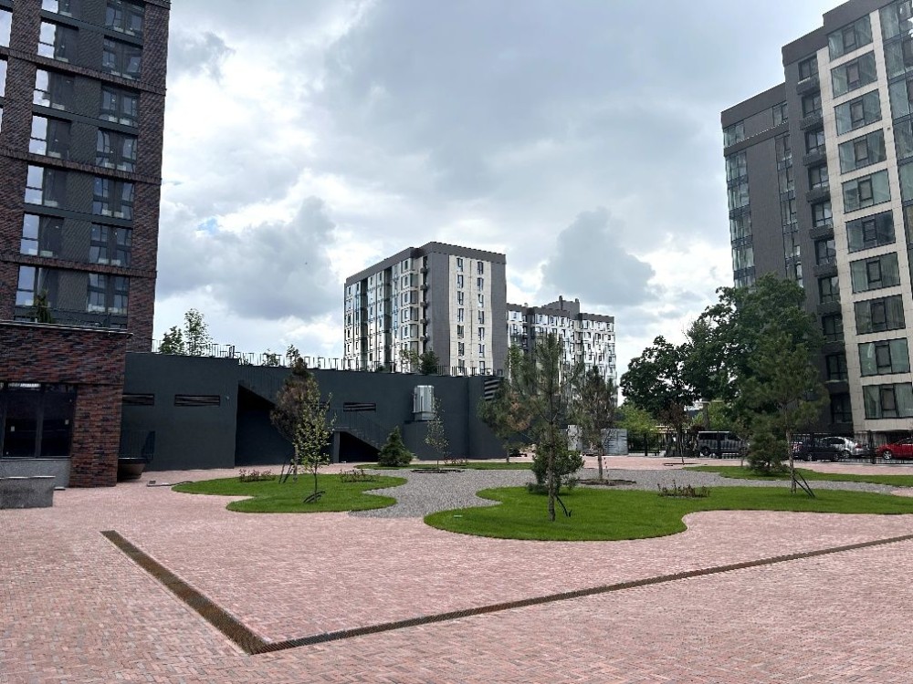 Внутрішній двір ЖК, вхід через арку, наше приміщення одразу по праву руку.