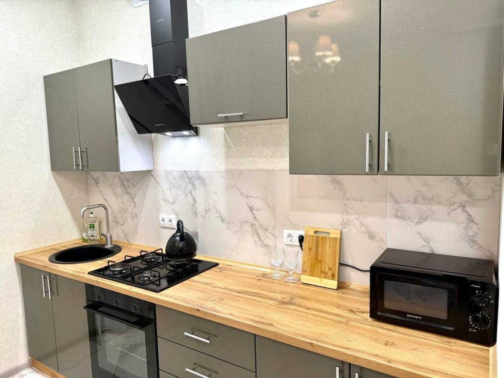 Кухня-студія відкриває нові горизонти комфортного простору. З будинку є два виходи, а цегляний паркан надає приватності. Будинок дуже теплий.