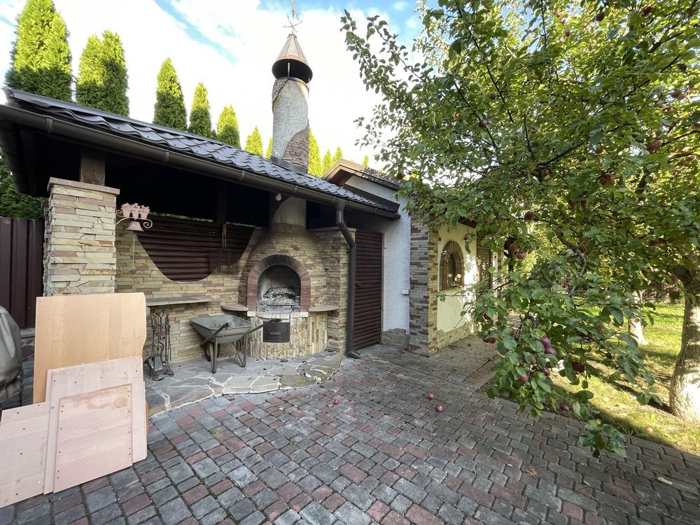 Доглянута прибудинкова територія з гаражем, садовим будиночком, мангалом та зоною барбекю.