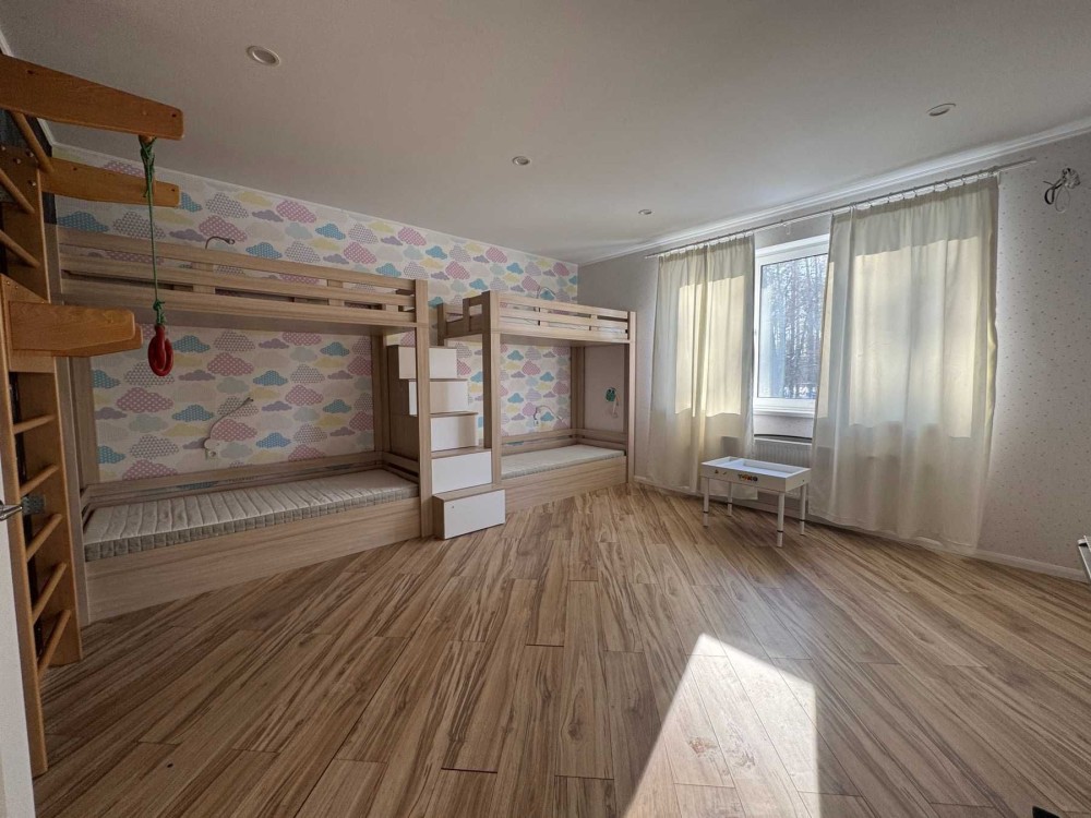2 поверхни, 3 світлі спальні кімнати, одна з яких велика дитяча кімната. Простора кухня вітальна на першому поверсі.