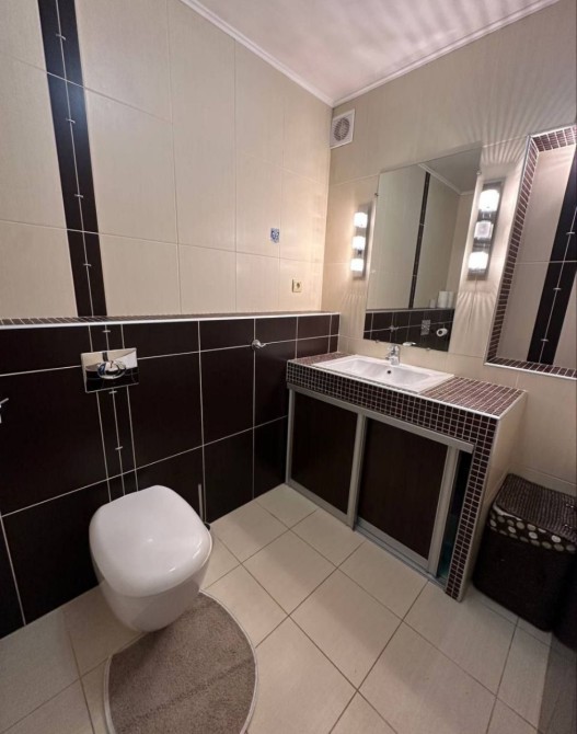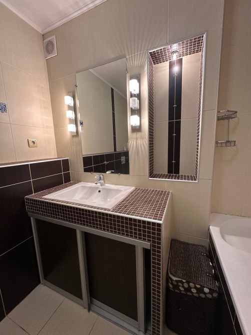 Квартира мебльована натуральними вмонтованими сучасними меблями (двоспальне ліжко, дві великі шафи-купе, шкіряні якісні дивани), укомплектована якісною побутовою технікою:
