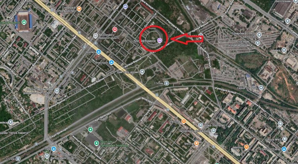Так званий "круглий" будинок входить по переліку архітектурних пам'яток міста Запоріжжя.