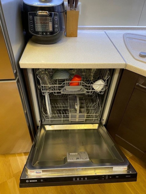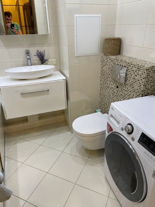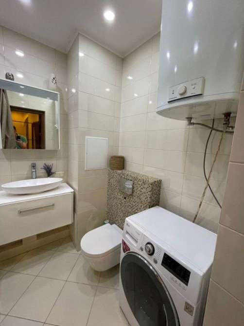 Пральна машина LG, бойлер, два кондиціонери, холодильник Bosch, лічильники тепла, води та електрики. Є кладова на поверсі.