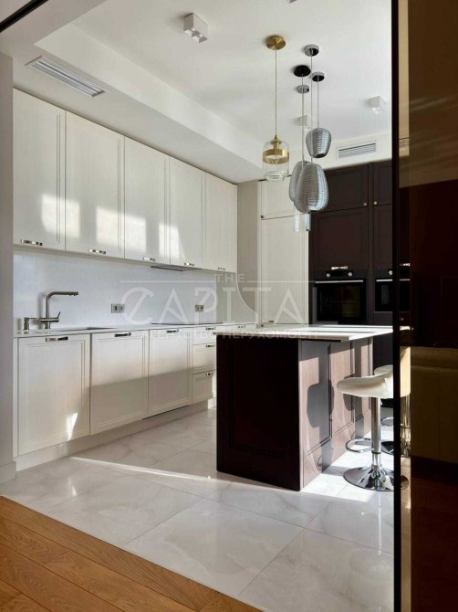 Інтер’єр виконаний за індивідуальним авторським дизайн-проєктом у сучасному стилі з використанням виключно якісних та дорогих матеріалів. Завдяки продуманому плануванню простір квартири організований максимально функціонально та комфортно.