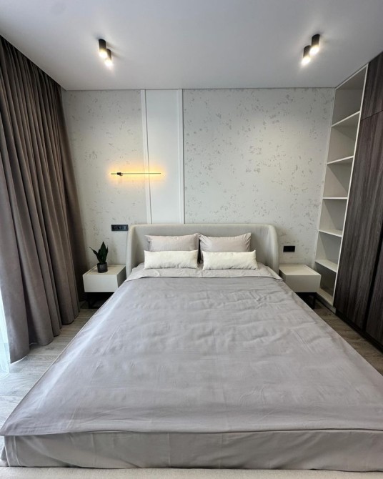 Вигоди: відкрита тераса, дизайнерський ремонт, перша здача, дизайнерське двоспальне ліжко з ортопедичним матрацом, місце для речей, панорамні вікна, хороший район.