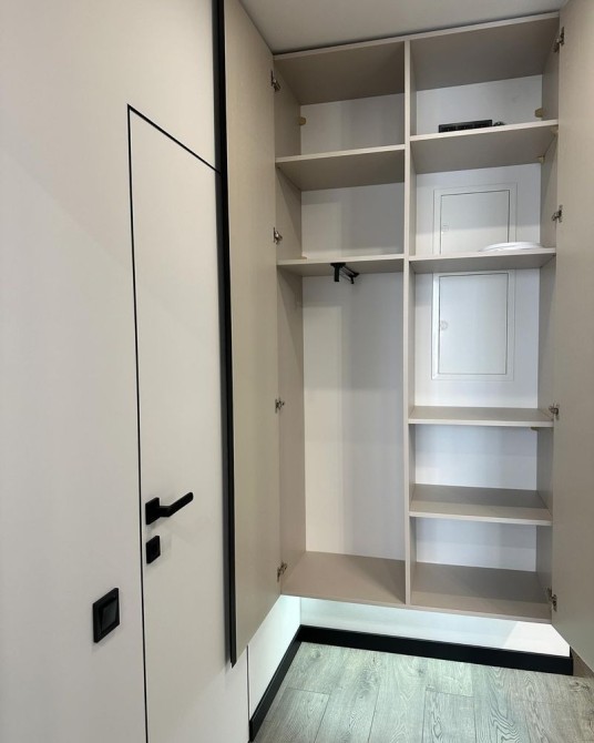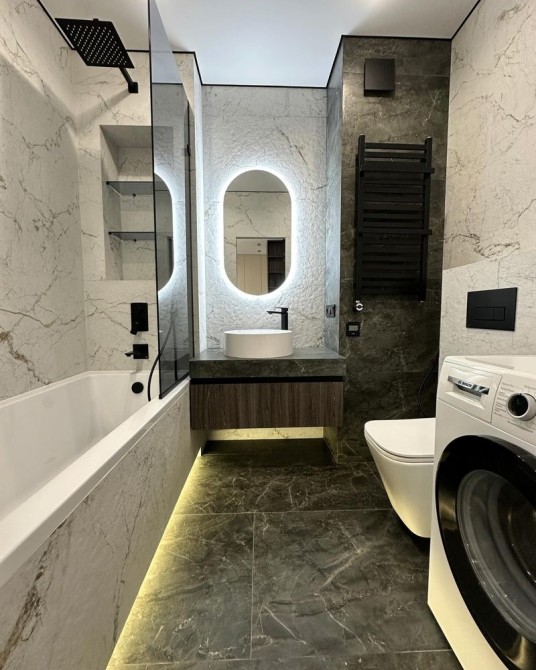 Техніка: посудомийна машина, кондиціонер, плазмовий смарт телевізор, індукційна варильна поверхня, електрична духова шафа, вмонтований холодильник.