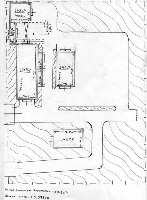 Немного в стороне построено админздание общей площадью 220 кв. м., помещение отапливается, подведена вода, газ, телефон, тут же обустроена подсобная комната для рабочих (раздевалка, душ).