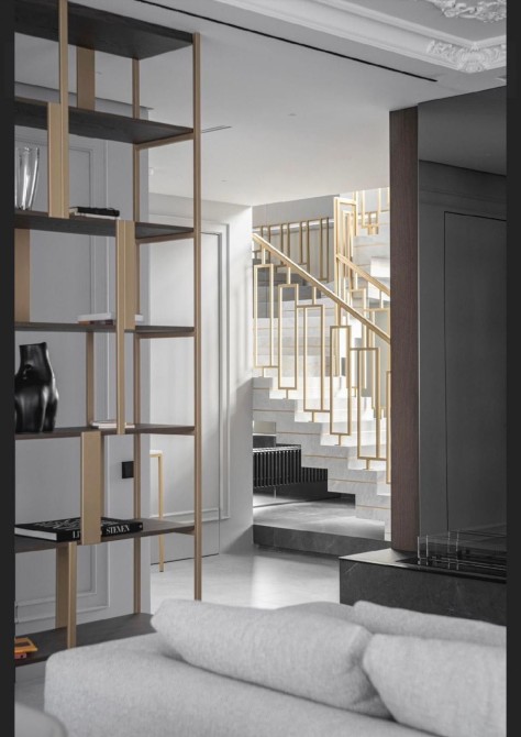 - сходи з італійського керамограніту з лед подіумом та освітленням Flos.