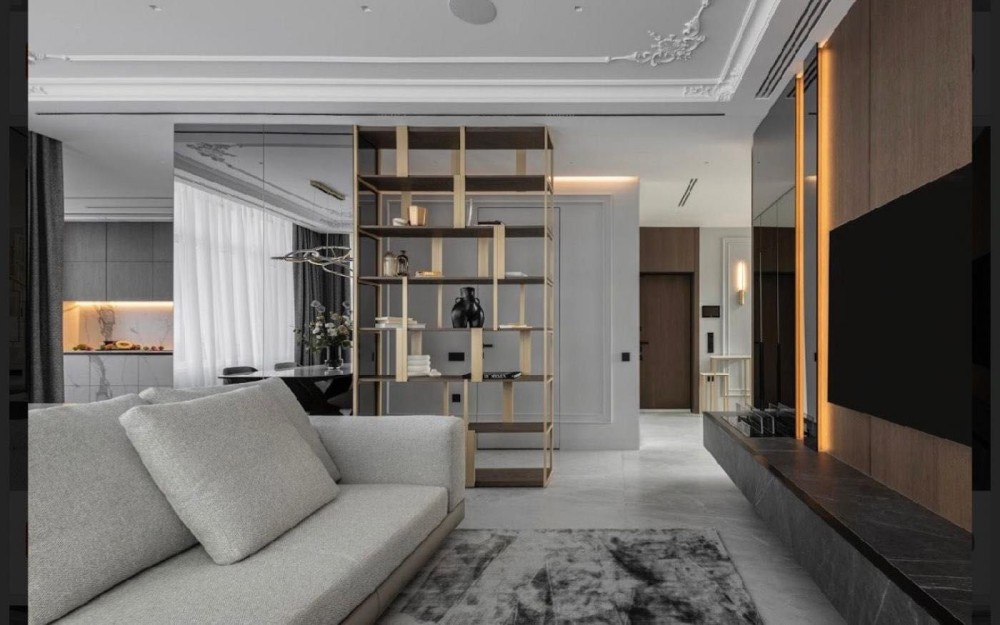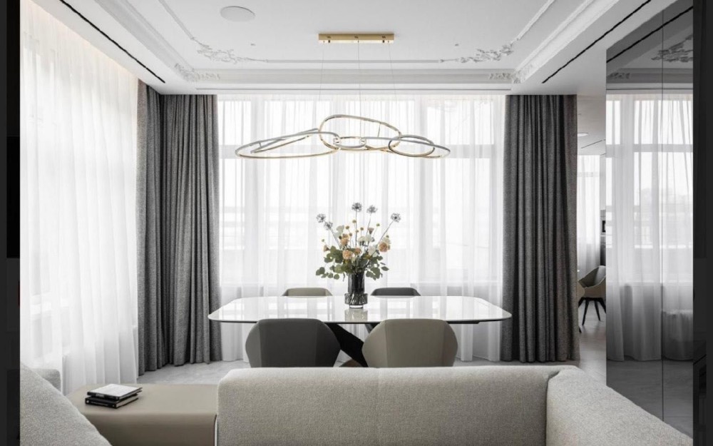 Освітлення у квартирі комбіноване: трекерні системи, точкове освітлення, люстри, лед зони та бра. Тюль та штори зроблені на замовлення з натуральних тканин італійського виробника. Встановлені двері прихованого монтажу. На підлозі натуральні англійські коври. В квартирі багато красивих тонованих дзеркал та скла, які збільшують простір. Встановлений мультирум. Електрофурнітура – Jung.