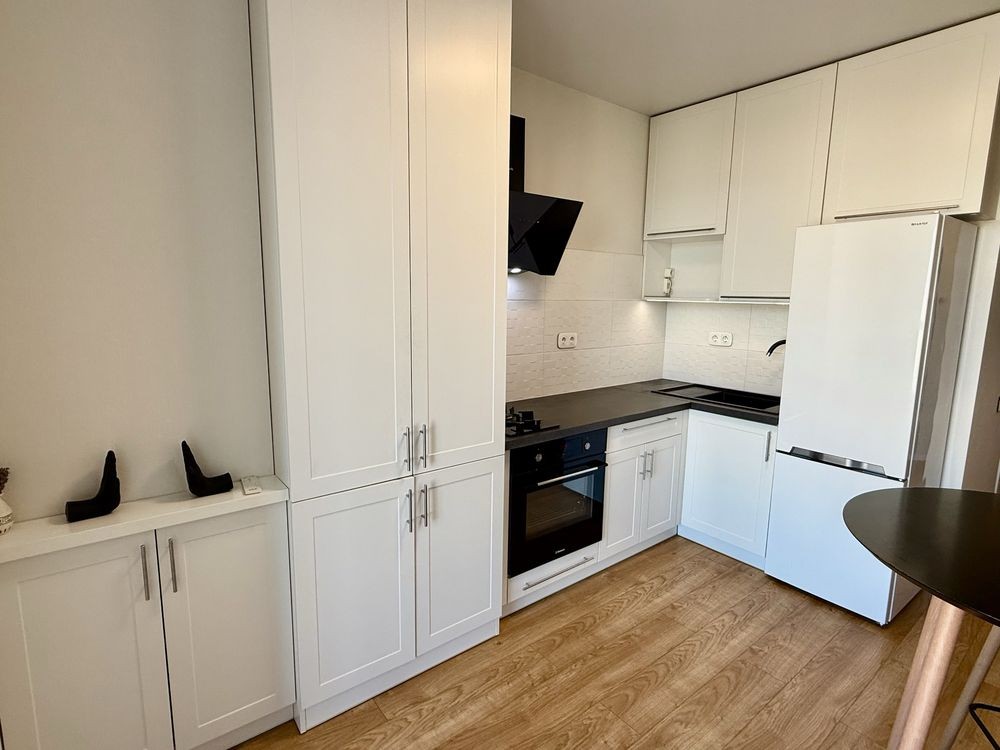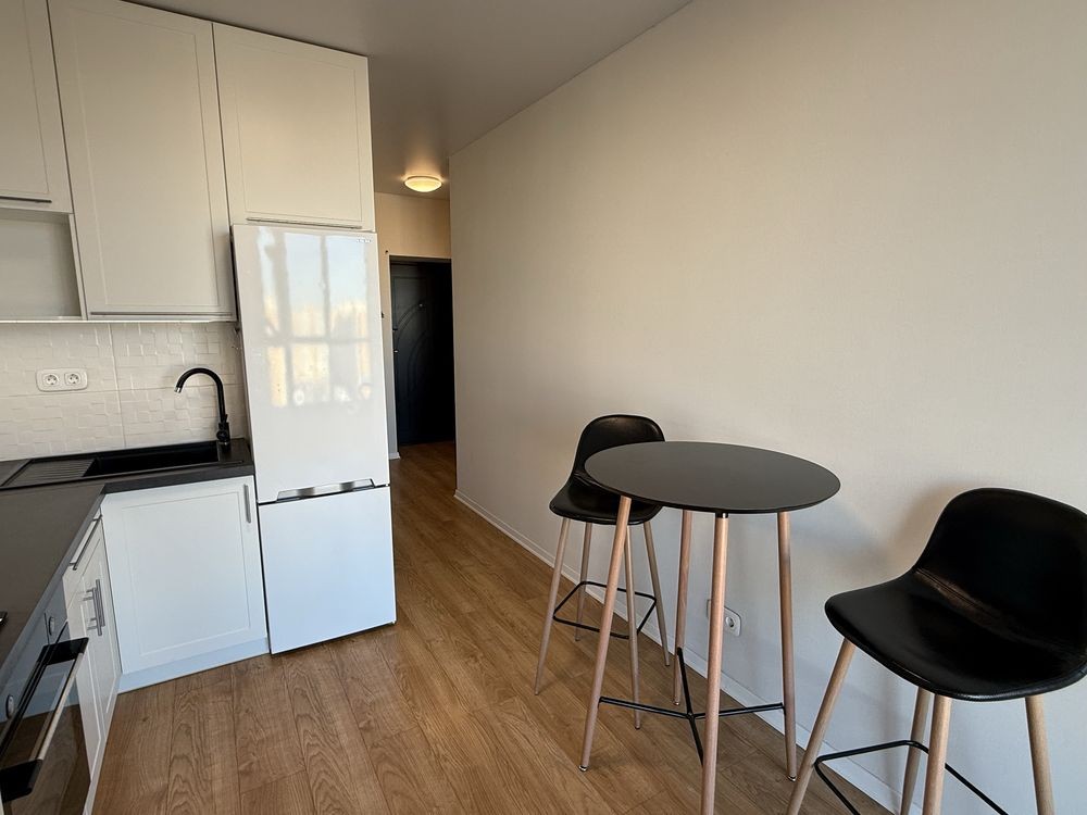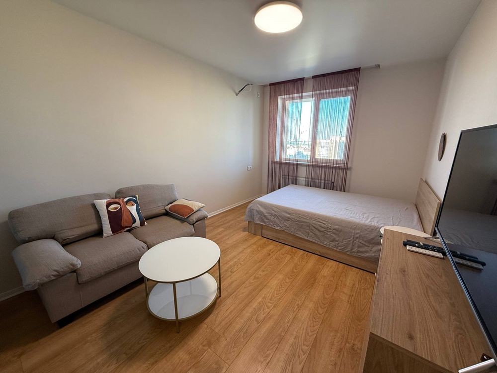 Оренда стильної 1 к кв з кухнею студією в новому будинку ЖК "Файна Таун" в Шевченківському районі, вул. Салютна, 2 Квартира 43 м2 , розташована на четвертому поверсі та складається з передпокою, спальні, великої кухні -студії та санвузла. Вікна квартири виходять в двір. Облаштована всіма необхідними меблями з екологічно чистої деревини та оснащена побутовою технікою: телевізор Samsung Smart 43, кондиціонери в кухні та кімнаті, плита індукційна, вбудований холодильник, духова шафа з функцією мікрохвильової печі, пральна машина з сушаркою. В кухні та ванній кімнаті тепла підлога, високошвидкісний інтернет. ЖК "Файна Таун" це: закрита територія з входом по картці, цілодобова охорона, відеоспостереження, паркінг, підземні контейнери для сміття, зарядні станції для електромобілів та лавки з інтегрованими батареями для підзарядки девайсів, розумне освітлення, яке підлаштовується під час доби та ще багато чого для того, щоб жити з комфортом й ні в чому себе не обмежувати) розповім при перегляді. Зручне транспортне сполучення та розвинута інфраструктура: магазини,спортивні та пішохідні зони ,зона барбекю, ресторани та кафе. Квартира, в якій поєднані комфорт та затишок, шукає своїх порядних орендарів молоду пару або одну людину без дітей та тварин. Перша оренда, квартира вільна.