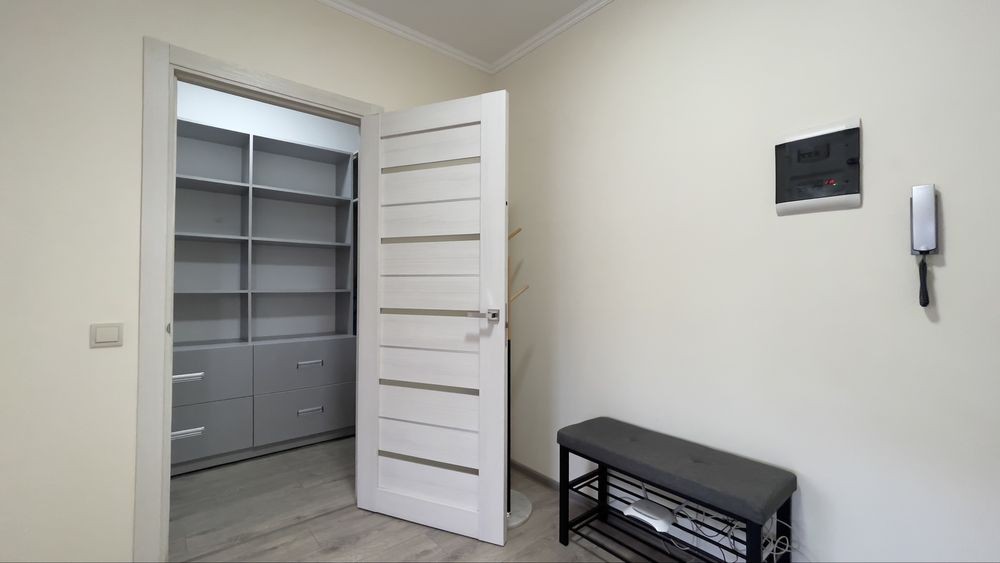 В квартирі є досить вмістима гардеробна з кладовою .