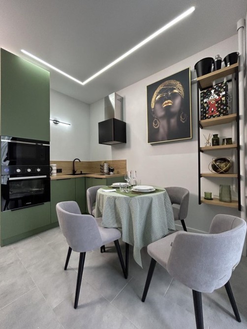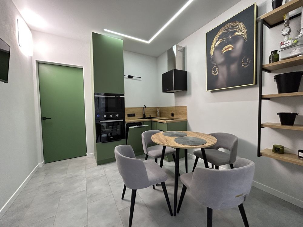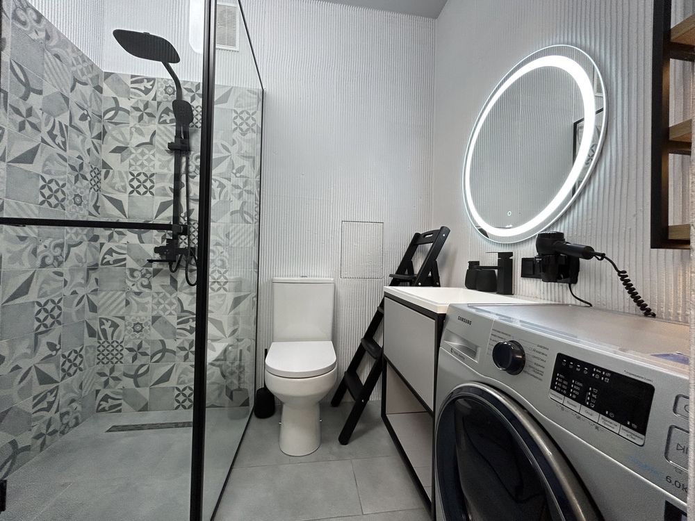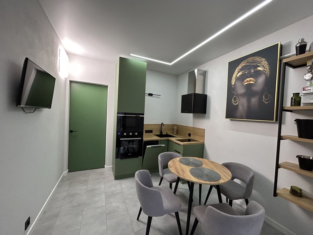 • є вся необхідна техніка: холодильник, плита, духовка, мікрохвильова, посудомийка, пральна машина, телевізор, кондиціонер; та меблі