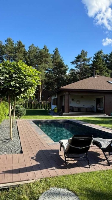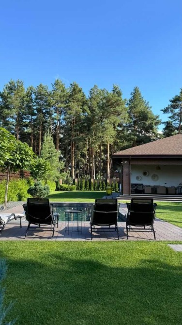 Будинок повністю мебльований і оснащений сучасною технікою. Є гараж на 2 авто, додаткова парковка, автоматичні ворота. На ділянці 15 соток — басейн з підігрівом, дитячий майданчик, зона вогнища, ландшафтний дизайн.
