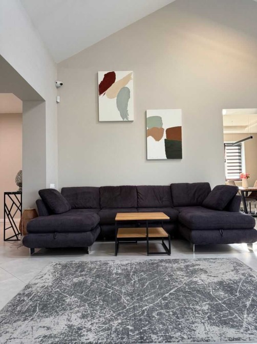 Просторий одноповерховий будинок площею 290 м², перша здача після якісного ремонту. Три спальні, дві дитячі кімнати, майстер-блок, гостьова, кабінет, три санвузли та гардеробні. Простора кухня-вітальня з каміном і виходом на терасу.
