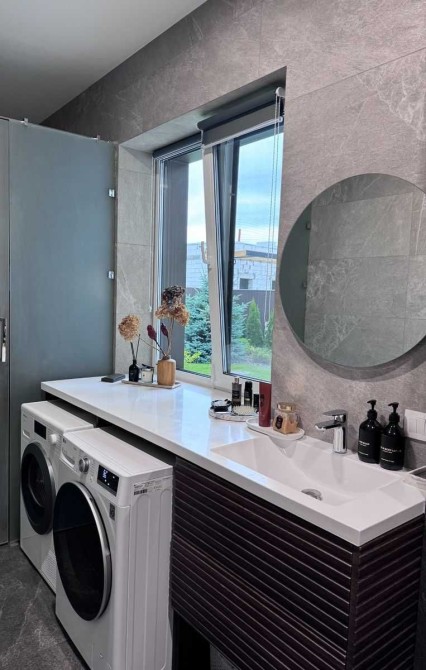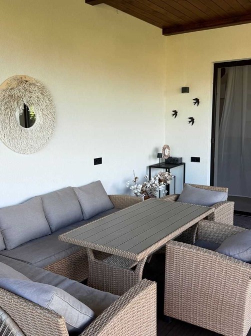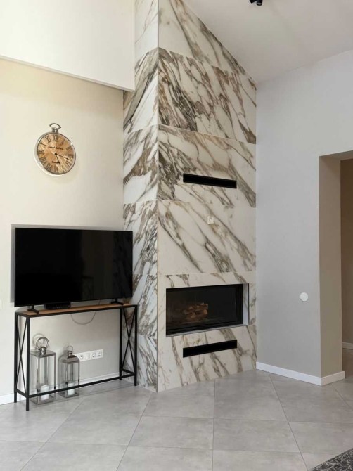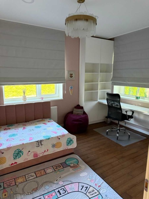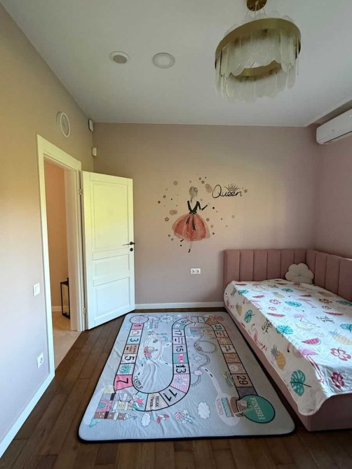 Дом полностью меблирован и оснащен современной техникой. Есть гараж на 2 авто, дополнительная парковка, автоматические ворота. На участке 15 соток – бассейн с подогревом, детская площадка, зона костра, ландшафтный дизайн.